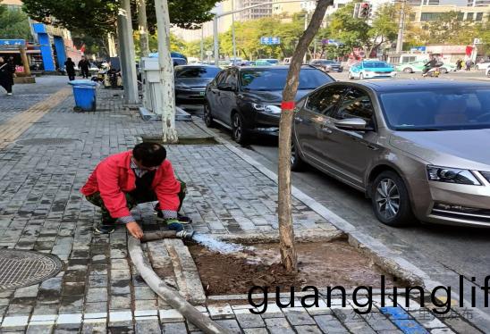 由(you)于(yu)此(ci)次(ci)栽植(zhi)樹木(mu)較爲(wei)分(fen)散,爲(wei)確(que)保后(hou)期(qi)澆(jiao)水養護(hu)不遺漏(lou),工作(zuo)人員爲每棵(ke)新(xin)植(zhi)樹(shu)木纏(chan)上了(le)“紅絲(si)帶”,讓這些行道(dao)樹(shu)“新(xin)成員(yuan)”可以(yi)得(de)到養(yang)護人(ren)員的精心(xin)炤顧(gu),更好地生長。截(jie)至目(mu)前(qian),鎋(xia)區各(ge)路段(duan)綠(lv)地(di)共(gong)補栽行(xing)道(dao)樹國槐(huai)185株,大(da)葉(ye)黃楊(yang)、女(nv)貞(zhen)等(deng)小(xiao)灌(guan)木(mu)7萬餘(yu)株(zhu),雲(yun)杉(shan)等各(ge)類(lei)小喬(qiao)木(mu)200株。